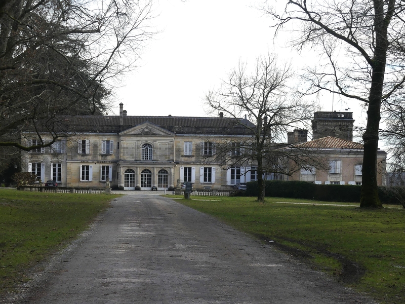 Et nous arrivons devant le Château du Taillan, également appelé le Château de la Dame Blanche. Il se raconte, d’après une lointaine légende, que Bianca, fille d’un chef maure vaincu à Poitiers par Charles Martel, séduite par le calme des lieux décida d’y faire bâtir une forteresse. La façade principale présente une légère avancée sur le reste du bâtiment coiffée d’un fronton. La façade côté jardin montre en son centre une demi-rotonde.